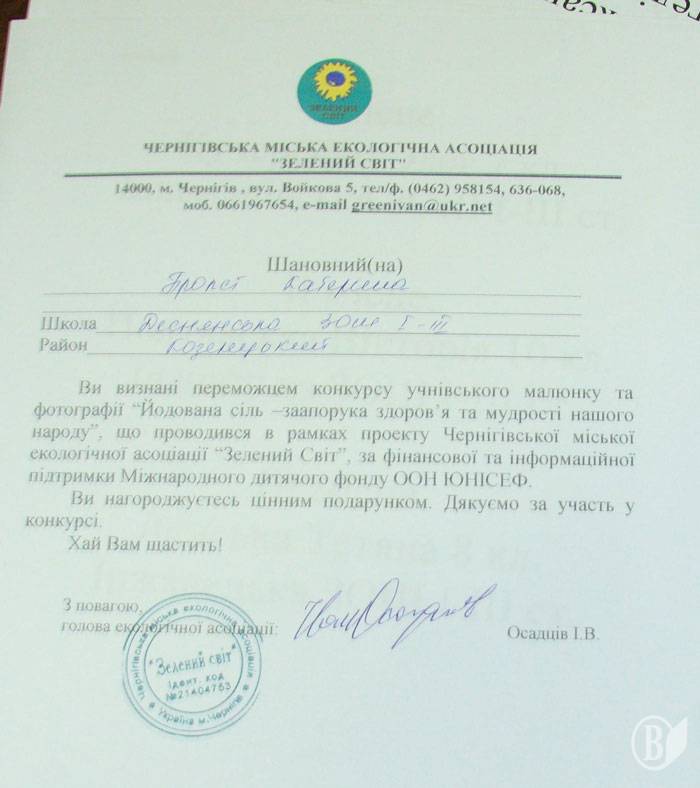 Сімдесят вісім подарунків для школярів передали представники організації „Зелений світ” керівникам районних управлінь освіти. Призи отримають кращі художники-переможці конкурсу дитячого малюнка на тему йодованої солі.
