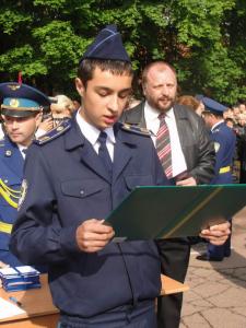 Зі словами привітань звернувся й начальник ліцею полковник запасу Микола Шпак, який висловив щиру вдячність місцевим органам влади, командуванню гарнізону, офіцерам-вихователям, батькам – усім тим, хто надає допомогу, підтримує і відстоює право на функціонування і розвиток ліцею. А своїм вихованцям побажав успіхів у навчанні та спраги до знань.