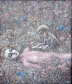 - Це все робиться не на натурі, хоча всі мотиви взяті з натури. Це робиться на стаціонарі у майстерні. Коли я про Седнів забув, то перекинувся на пейзажі придніпровських сіл. Навіть будучи в Америці, кожного року приїздив, шукав собі оселю на Дніпрі – то в одному місці, то в другому. Насамкінець знайшов собі своєрідну студію на батьківщині Шевченка, купив у Каневі стару звичайну хату, навколо там старі дерева. Хоча то не мій ідеал, адже я люблю поле, а в Каневі немає поля. І я любуюся на Дніпро, надихаюся тим. Після того, як повернувся в Україну, моє життя триває і в Києві, і в Каневі. Але пейзажам я нині приділяю найменше часу. Якби я тільки цим займався, та ще й був би продавцем, то був би багатий художник. І якби ще й портрети писав! А взагалі портретів у мене дуже мало. Мені кажуть: «Пиши портрети, і пиши потрібних людей». Але якби я на тому зупинився, то історія мистецтва дуже б збідніла.