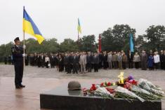 Покладання квітів здійснено згідно із розпорядженням Кабінету Міністрів України «Про заходи з відзначення 65-ї річниці закінчення Другої світової війни».