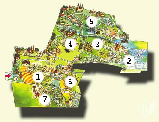 Карта музею: 1. Наддніпрянщина 2. Полтавщина 3. Полісся 4. Подол 5. Карпати 6. Південь України 7. Народна творчість