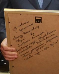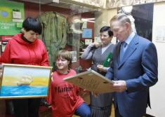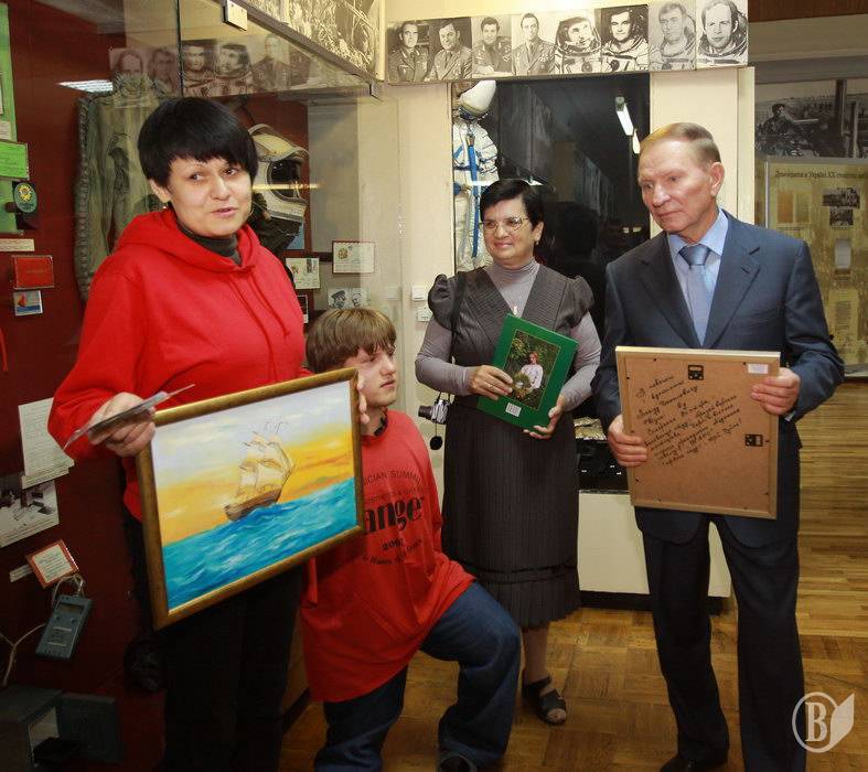 У музеї відбулась зустріч Л.Кучми з Віктором Семеренко. Отримавши у подарунок дві картини, Леонід Данилович відповів взаємністю.