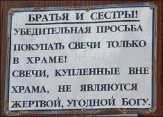«Поминання на 3 роки – 1100 рублів», «Вічне поминання – 2500 рублів» та «Свічі, придбані поза храмом, Богові не бажані». Такими написами зустрічає вірних (і не дуже) церква при Старомакаріївському цвинтарі міста Кірова.