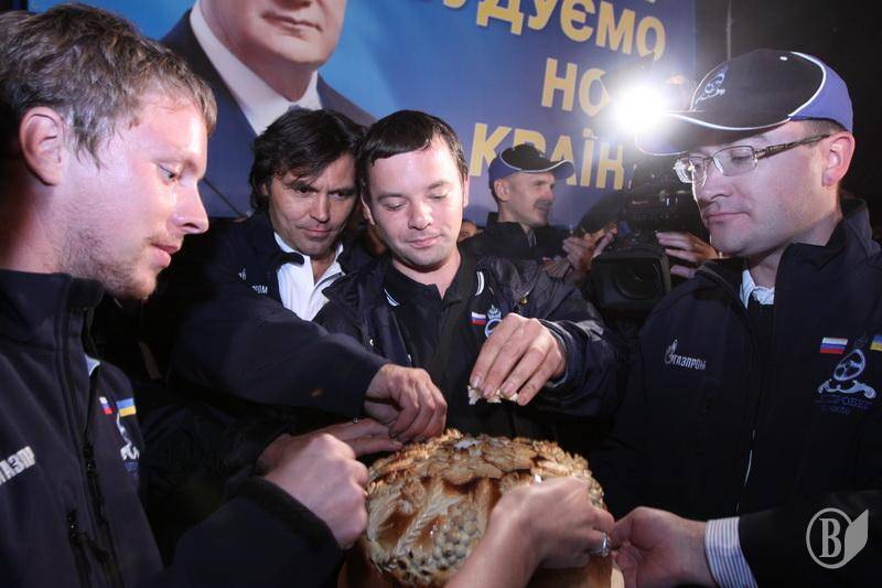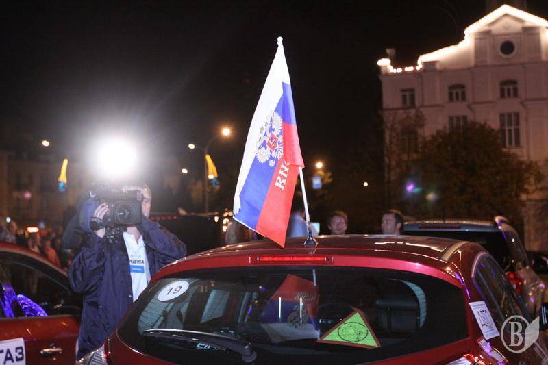 Учасників автопробігу Санкт-Петербург-Київ зустріли під портретом Януковича. ФОТОрепортаж