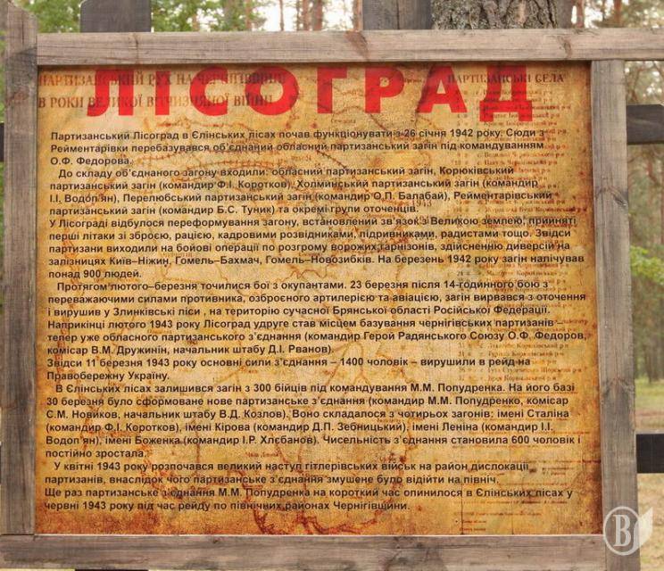 В Елинских лесах Щорского района на Черниговщине торжественно открыта первая очередь музейно-мемориального комплекса партизанской славы «Лесоград».