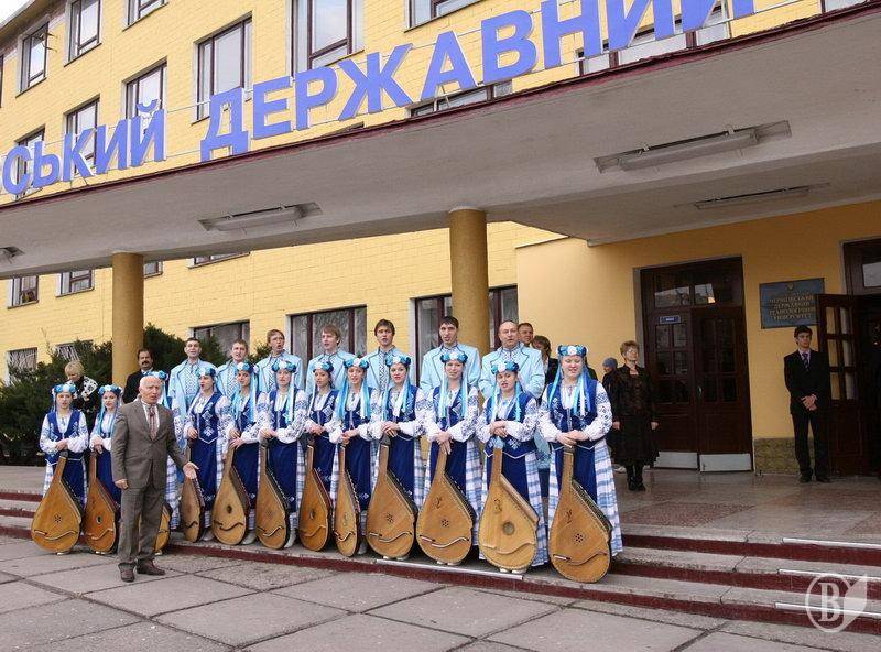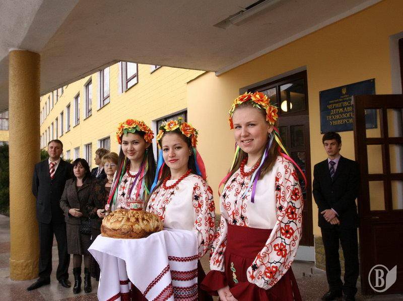 Біля центрального входу університету його зустрів ректор ЧДТУ проф. Cергій Шкарлет. Три студентки в національних костюмах піднесли коровай з сіллю під супровід обрядової пісні «Зелене жито».