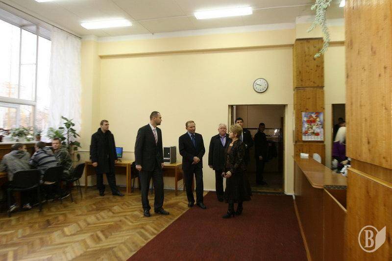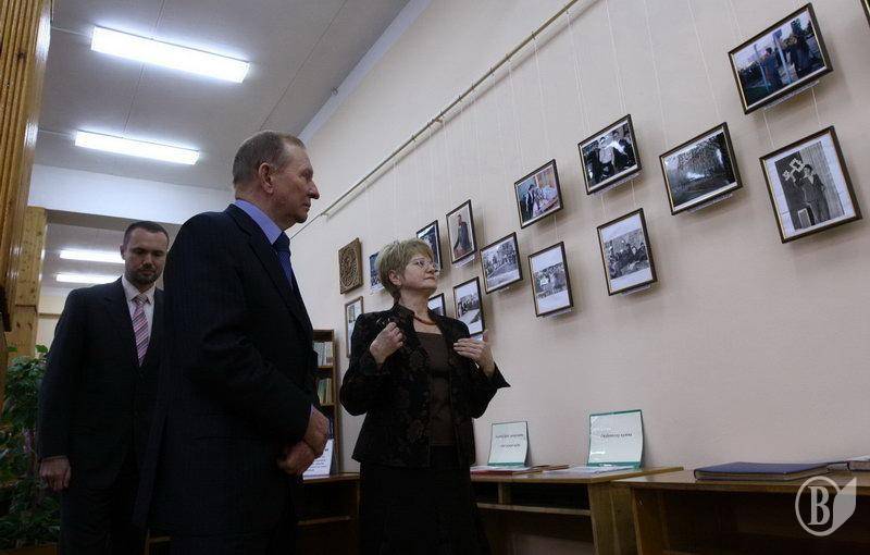 Гості відвідали читальний зал бібліотеки університету, де Л.Кучма ознайомився з фотовиставкою «Постать університету протягом 50-років у фотографіях».