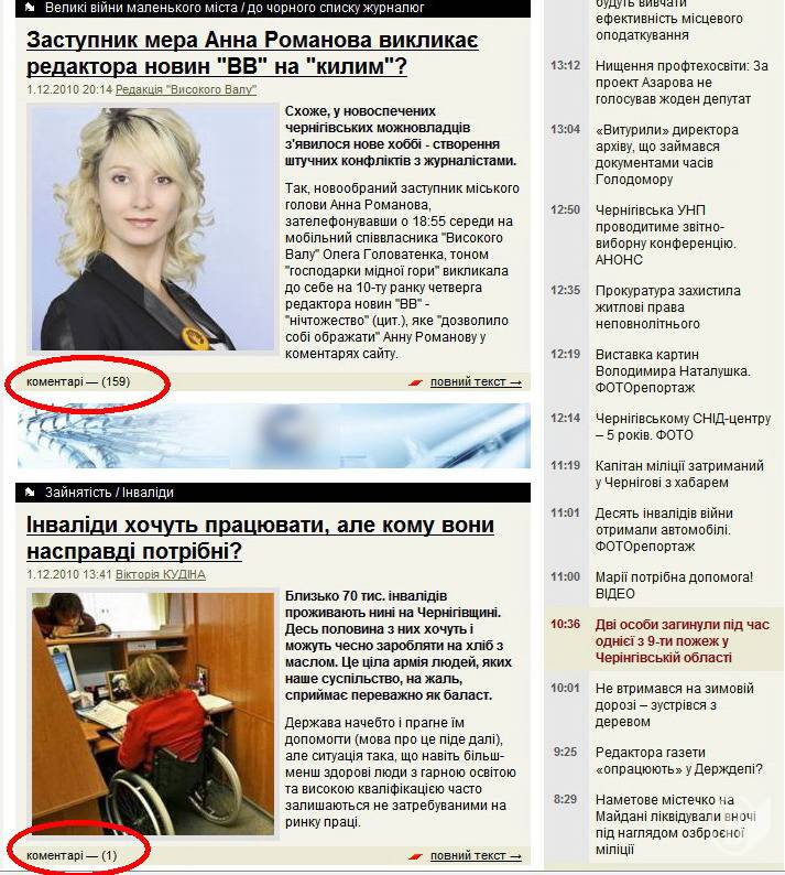 1.12.2010 Заступник мера Анна Романова викликає редактора новин "ВВ" на "килим"?