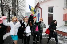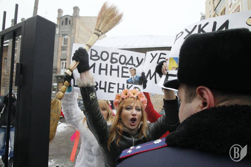 Судебное заседание сопровождалось пикетом «Уборка мусора» в поддержку подсудимой под лозунгами «Свободу Инне Шевченко!», «Суки, уберите руки!», «Наше FE men там!». После пикета активистки направились на заседание суда, куда их пытался не пустить отряд милиционеров. После небольшой толкотни победила молодость.