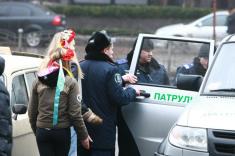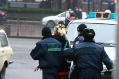 Не обнаружив в одежде активистки достаточного повода для задержания, милиционеры обратились за инструкциями к неизвестному абоненту. Использовав подсказку «звонок другу», служители закона исправили формулировку, поэтому официальным поводом для задержания стала 185 статья АКУ (нарушение порядка проведения акций).