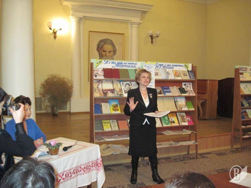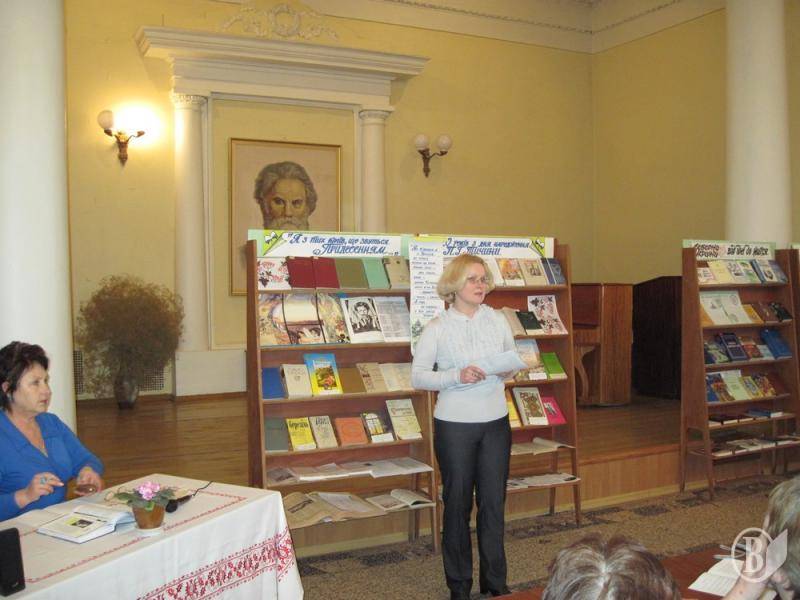 Модератор заходу бібліотекар відділу краєзнавства Вікторія Солонікова ознайомила присутніх з книжково-ілюстративною виставкою „Я з тих країв, що звуться Придесенням...” та наголосила, що читання присвячуються саме чернігівському періоду у житті та творчості нашого великого земляка.