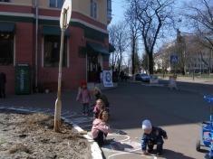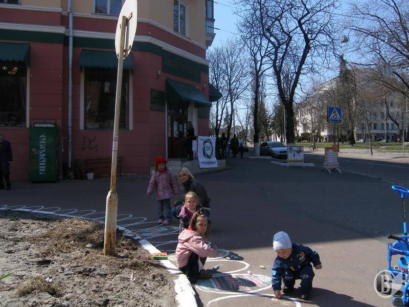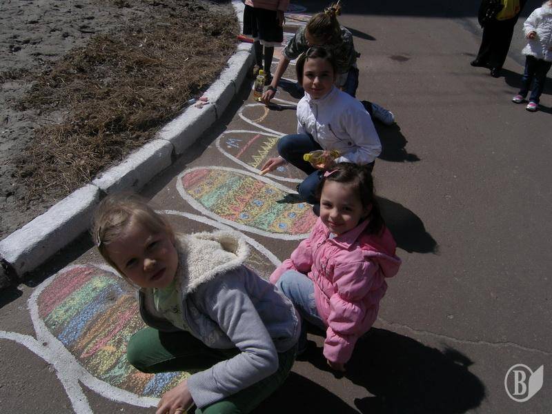 Далі гості події могли за бажанням продовжити розпис або на традиційному матеріалі, або на повітряних кульках, або ж зробити малюнок на асфальті. Останній варіант користався особливою популярністю серед наймолодших учасників, котрими був розмальований асфальт біля клумби квітів поруч із місцем проведення акції.