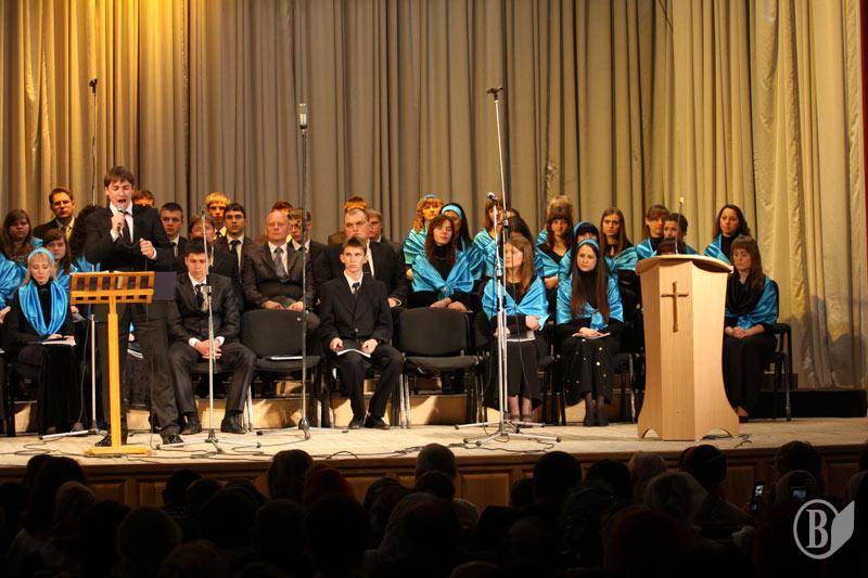 Чернігівські євангельські християни-баптисти на Великдень традиційно збираються у філармонії.Їхнє Великоднє свято і служба дещо відрізняються від наших традиційних православних канонів.