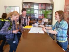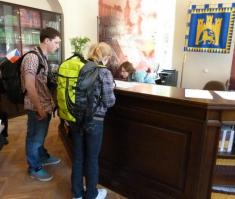 Велика світла кімната, де може розміститися багато людей, є зручні диванчики для відпочинку, багато інформаційної літератури, карти міста, буклети. Привітна дівчина Оля за стойкою зустрічає кожного хто заходить так, ніби вона все життя тільки його і чекала.