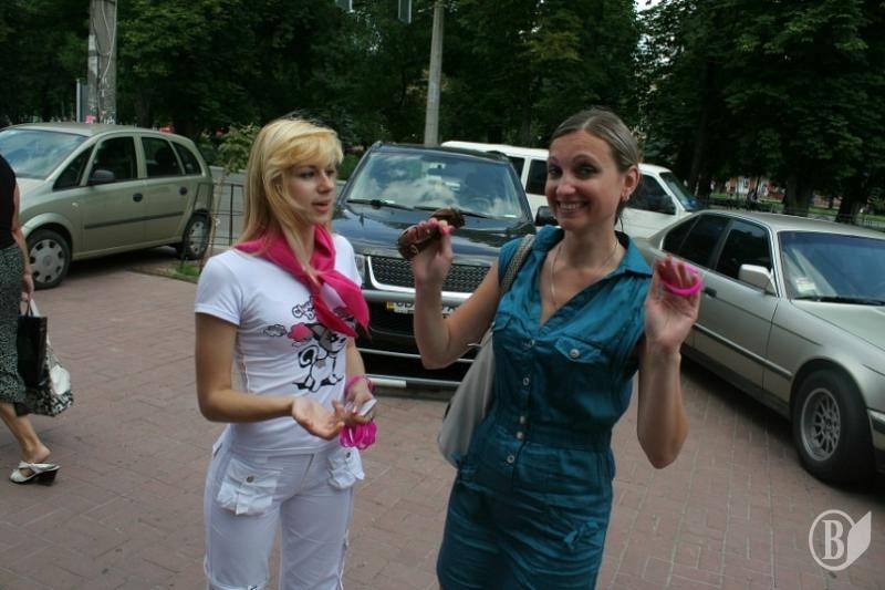 Волонтери Чернігівської молодіжної ГО <<Центр прогресивної молоді <<Апельсин>> поширювали спеціальний знак єднання - малинові браслети з написом <<Залишайся людиною>>.