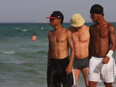 Поліцейські , які чергують на пляжі, охороняють туристів, що знаходяться на території обгородженій вірьовкою. Туди нікому, крім туристів і обслуги готелю навіть заходити суворо заборонено.