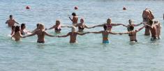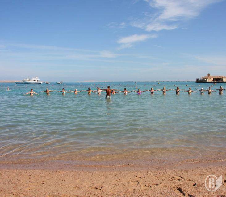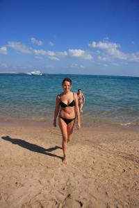 Він плаває доти, доки дружина не виганяє його з води сходити на обід. Я вдень п’ю тільки каву і сік, та жую морозиво.