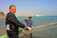 Мій друг захоплюється віндсерфінгом. Я – фотографією і бігом. Він катається на дошці під парусом і прилітає аж із Німеччини. Я бігаю на березі і граю у волейбол.