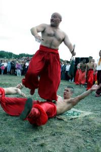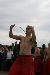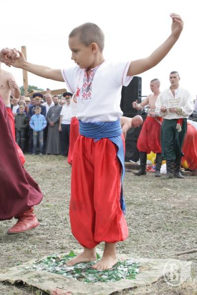 Ой, що буде?! Але на тілі учасників - жодної подряпинки. Не можна було спокійно дивитись, як на живіт лежачого горілиць козака падає з метрової висоти ... важка булава або гострий кінець шомпора чи кинджала. Як з великою силою козаки кидають один одного об землю. Так, що піднімається стовпом пилюка... «Їм же дуже боляче!», - смикає за руку хлопеня свого дідуся посеред глядачів. «На те вони і козаки, що болю не чують!», - заспокоїв той малюка.