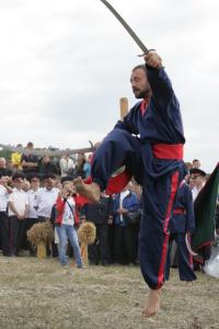 Вражала віртуозність володіння що бойовою палицею, що списом, які у козацьких руках розкручувалися з неймовірною швидкістю, незалежно від того, робили це козаки поперед чи позаду себе. А коли вийшли і стали розмахувати шаблями, мечами та серпами, продемонструвавши карколомні прийоми буквально перед носом у глядачів, у натовпі почулися «охи» і «ахи». Правда, дехто засумнівався, чи зі справжньої сталі вони. І ніби почувши це, козаки миттєво розвіяли сумніви: одним ударом гостренної зброї розсікали вони навпіл товстелезні дерев’яні рогатини, які тримали їх побратими.