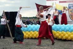 Під закличні позивні і бій литавр на майданчик виходять, щоб продемонструвати показові виступи, учасники 3-го Міжнародного фестивалю слов’янських бойових мистецтв «Перунів полк» та 1-го Всеукраїнського турніру з кулачних та спортивних ножових боїв «Прилуцький герць», які представляють міжнародну федерацію козацького бойового мистецтва «Триглав» (Тернопіль), Київський осередок міжнародної федерації бойового гопака «Козак Мамай», федерацію історичного фехтування «Сімаргл» (Чернігів), клуб бойових мистецтв «Патріот» (Чернігів), секцію спортивних ножових боїв «Блейд-бразерс» (Харків), Київський клуб кікбоксингу, Прилуцьку міськрайонну громадську організацію «Курінь імені Івана Сірка» та «Курінь імені Івана Богуна» (Прилуцька виховна колонія).