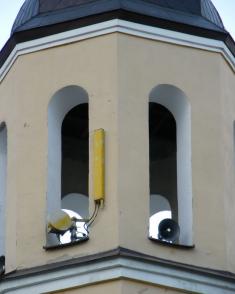 Для зв'язку з грішниками, щоправда, одностороннього, на дзвіниці також встановлені мегафони. Вони покликані імітувати дзвін колоколів.