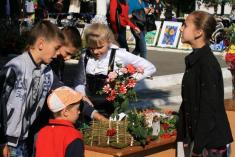 На площі перед будинком культури діти демонстрували виготовлені власноруч декоративні експозиції з нагоди свята, а також малюнки на героїко-патріотичну тематику.
