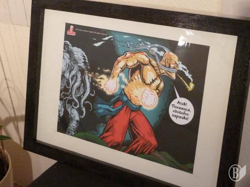 На виставці був представлений станковий живопис, графіка, тупо-плакати, малюнки про життя першого супергероя українських коміксів козака-характерника Грицька Сраки.