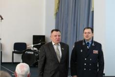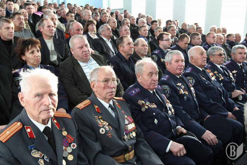 У залі зібрались побратими по службі, які не дивлячись на поважний вік – завжди в строю. Група ветеранів отримала відзнаки, нагороди та похвальні грамоти.