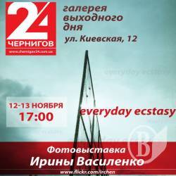 Гостьей галереи будет Ирина Василенко – молодой фотограф, которая представит ряд цветных фото под общим названием everyday ecstasy.