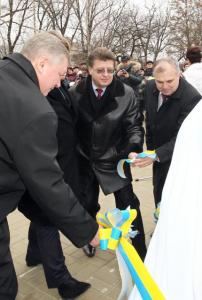 В святковій атмосфері у театральному сквері в присутності численних гостей та мешканців міста почесні гості на чолі з меценатом Юрієм Коптєвим під звучання пісень у виконанні Бернса був відкритий пам'ятник.
