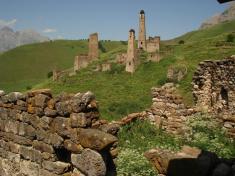 Дійсно, у цей день я побачив ще багато цікавого: древній храм Тхаба-Єрди, баштові комплекси Вовнушки, Ній, Егікал. Всі вони знаходяться поблизу кордону з Грузією і тому кілька разів під час поїздки нас перевіряли російські прикордонники. З багатьох місць, по яких їхали «Нивою», можна було бачити білу вершину красеня-Казбека. Я побуваю і там, але відбудеться це майже у фіналі мандрівки.