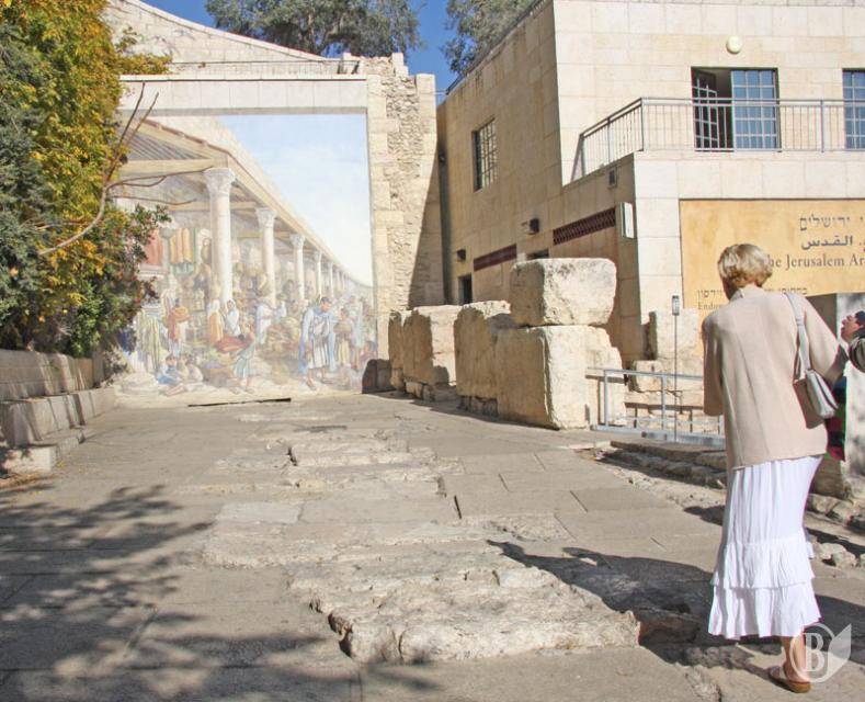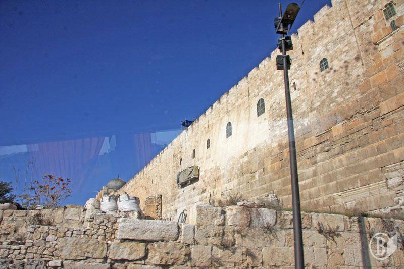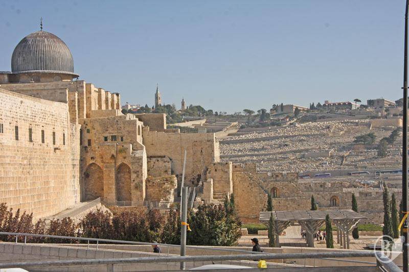 Направо – Храмова гора, святість якої сходить до часів біблейського патріарха Авраама. Там же стояв колись храм Давида, до якого приходив молитися Ісус і вигнав з нього торговців.