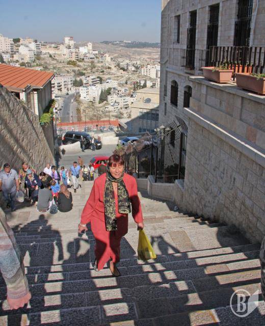 На автобусі заїхали мало не найвищу точку Віфлеєму. Треба ще було піднятися східцями на гору, де стояв храм.