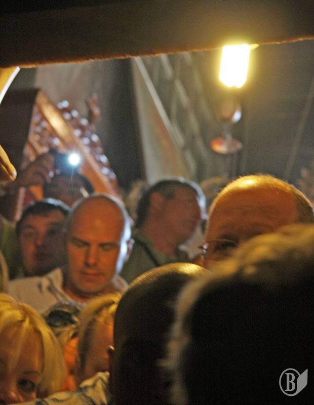 Близько години ми чекали закінчення служби, коли відкриють дорогу до нижньої печери. Дехто встиг обпалити частину куплених свічок, роздивитися ікону Богородиці, яка ледь помітно усміхається. А також помітити: лик Христа вгорі на колоні перед спуском до печери підморгує, якщо довго дивитися на нього.