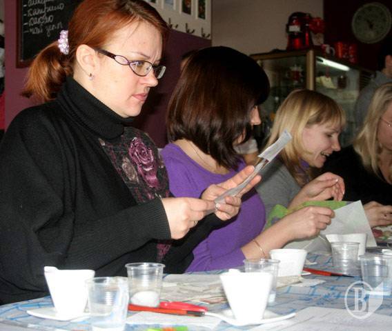 Від редакції. Червона чашка з кицьками на заглавному фото - зразок якісного декупажу. Вона не була зроблена під час занять влаштованих з рекламною метою.