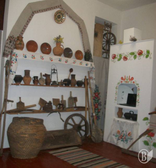 Там притулився мисник, величаво стоїть дідух, барвистими орнаментами всміхається піч і все це рясно уквітчане вишитими рушниками.