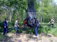 Напередодні Дня Перемоги викладач предмету «Захист Вітчизни» Губко Анатолій Петрович разом зі студентами технікуму упорядкували Могили мирних жителів міста, жорстоко розстріляних під час ворожої окупації в урочищі Кривулівщина.