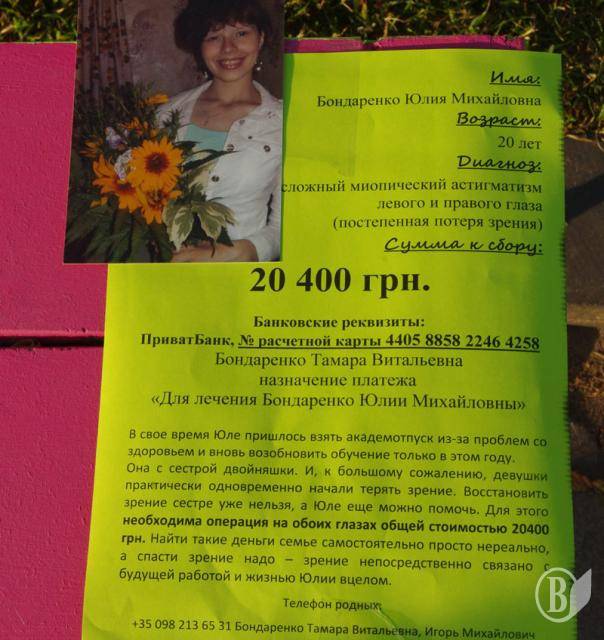 Вона із сестрою - двійняшки. Обидві майже одночасно почали втрачати зір. Повністю відновити зір сестрі вже неможливо, а Юлі ще можна допомогти.