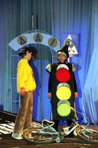 Дійство, з використанням всіх атрибутів сучасної дороги, розгорталося на сцені філармонії, а в залі - діти, які уважно слухають і дивляться з зацікавленим поглядом.