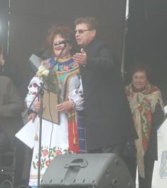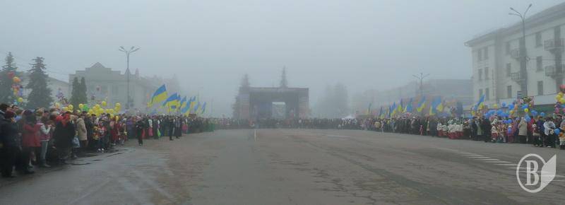Сцена на центральній площі була оздоблена потртретом кандидата, якого представляли заступники голови ОДА і голови облради.