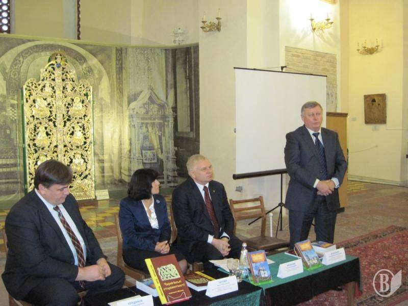 Генеральний директор заповідника Андрій Курданов, ведучий заходу, запросив директора Центру пам’яткознавства Національної академії наук України і Українського товариства охорони пам’яток історії та культури Олену Титову представити науковий збірника «Чернігівські старожитності». Він наголосив, що заповідник та Центр пам’яткознавства спільно підготували це видання. Дві установи поєднує багато спільного, зокрема в пам’яткоохоронній, музеєзнавчій та науковій діяльності. Тож недаремно ще у 2009 році укладена угода про співробітництво. А в липні 2012 року генеральний директор заповідника Андрій Курданов та директор Центру Національної академії наук Олена Титова підписали установчий договір про видання наукового збірника «Чернігівські старожитності».