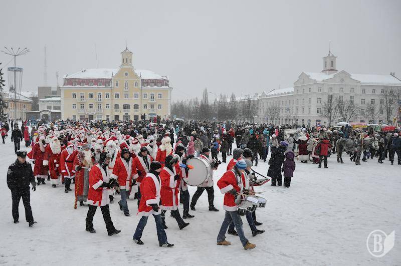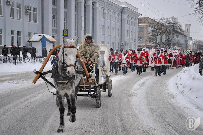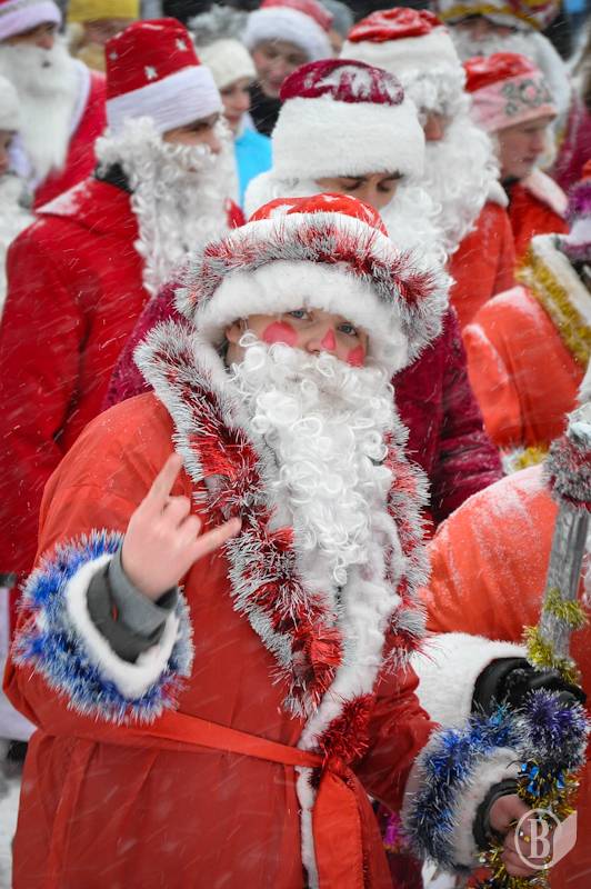 Діди Морози різного віку у Чернігові провели сьогодні свій парад. Вони підтвердили свою владу не тільки низькими температурами , а й викликали м’який сніг на час свого дефіле вулицями нашого міста.