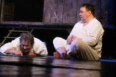 Сюжетна лінія вистави привертає увагу глядача до вічних категорій буття. Це історія про справжню чоловічу дружбу, любов, доброту, людяність та інші життєві цінності. Саме на цій сцені актори показали справжній театр, в якому головну роль грає Людина. Її почуття, думки, емоції, її комфортне середовище.