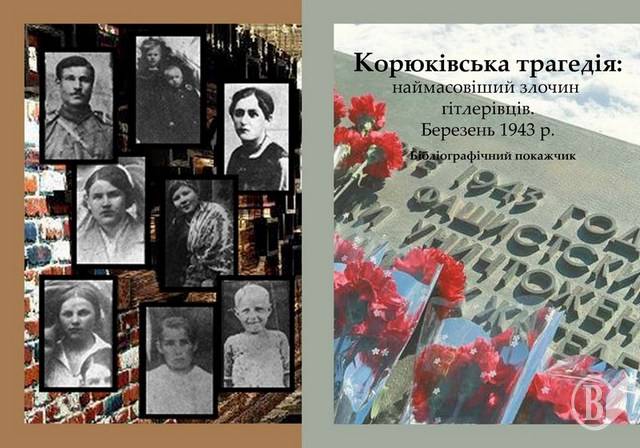 Бібліографічний покажчик «Корюківська трагедія: наймасовіший злочин гітлерівців, березень 1943 р.» також за дорученням творчої групи на чолі з директором Чернігівської обласної універсальної наукової бібліотеки ім. В.Г.Короленка Інною Аліфіренко представив автор вступної статті С. Бутко. Це видання Українського інституту національної пам’яті, Чернігівської обласної універсальної наукової бібліотеки ім. В.Г.Короленка і Корюківської централізованої бібліотечної системи. Творча група: упорядники Тетяна Сіренко, бібліограф Корюківської централізованої бібліотечної системи, Людмила Студьонова і редактор Ірина Каганова з обласної бібліотеки.