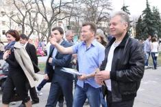 Зате хлопці на Алеї героїв влаштували змагання, відправляючи до рота по 5-7 дерунів одним махом. Смажив сам міський голова Олександр Соколов.