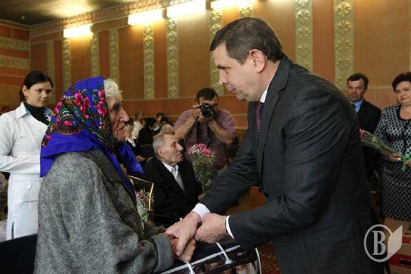 З нагоди свята Володимир Хоменко вручив ветеранам та солдатським вдовам подарунки та квіти.