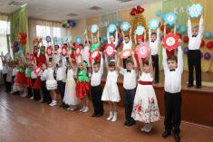 Першокласники підготували для гостей свята багато цікавих номерів Дітки співали. Танцювали, показували живий алфавіт, сценки з життя. Враховуючи специфіку 1-ої школи (нахил на іноземні мови), первачки продемонстрували свої знання англійської.