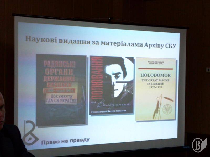 У архівах КГБ збережені усі циркуляри, збережені з 1938 року майже повністю. Але найцікавіше - це підручники КГБ, у якому зібрані усі "найкращі" напрацювання. Також цікавими є справи оперативної розробки, зокрема на літераторів і агентурні справи. Під час лекції на фото- агентурне донесення на Олександра Довженка.