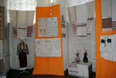 В експозиції — «черницькі» рушники (у давнину такі рушники вишивали черниці в монастирі). Для цього типу рушників характерні великі вазони зі стилізованими квітами і зображенням птахів, вишитих на домотканих конопляних полотнах. Такі рушники вишивали, зазвичай, червоними та чорними нитками. Також є домоткані конопляні полотна, вишиті біллю, тобто «білим по білому», з геометричними чи рослинними орнаментами, символізуючи Творця, вогонь та сонце.